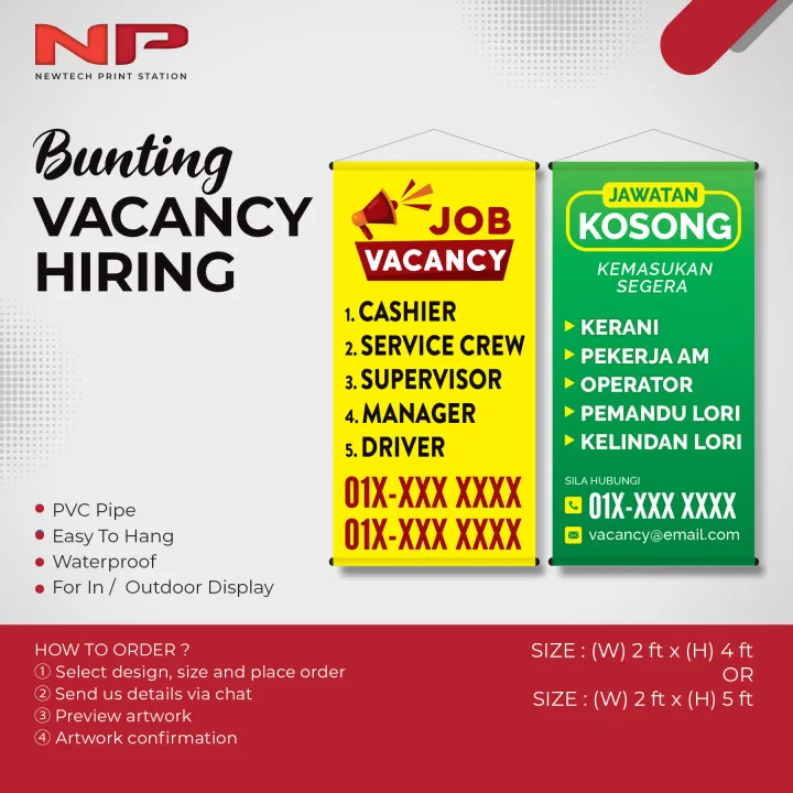 Jawatan Kosong Job Vacancy Hiring Banner Bunting 空缺 招聘 聘请布条 Free Templates Lazada